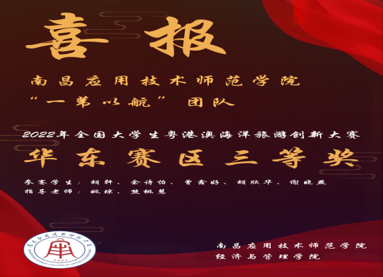 喜报|我校在全国大学生粤港澳海洋旅游创新大赛中喜获华东赛区三等奖!
