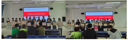 由兰金辉宣读获得国家奖学金和国家励志奖学金人员名单并为其颁奖。辅导员冉迦葆对上一阶段工作中表现出色的学生干部进行表彰并为其颁奖。