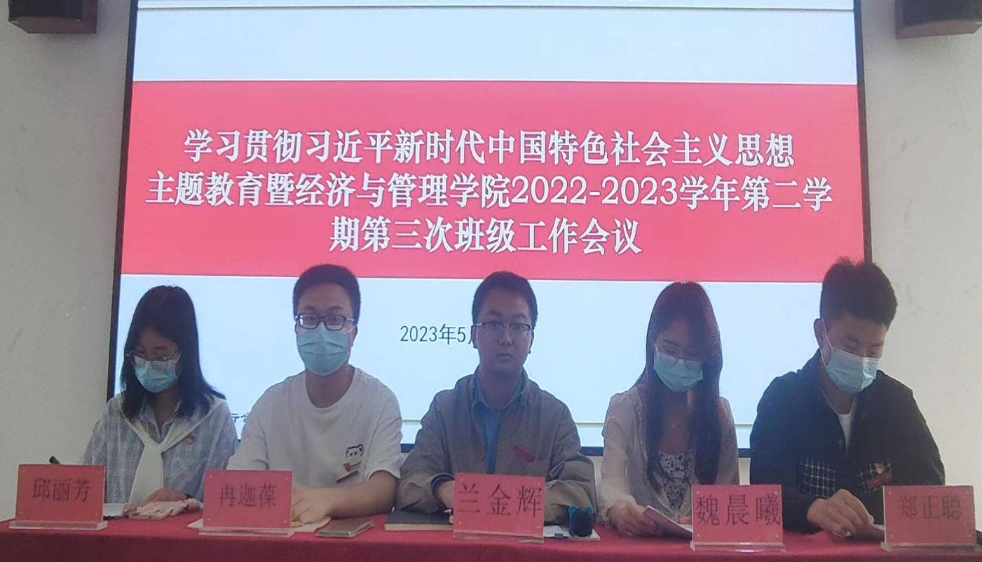 为深入学习贯彻习近平新时代中国特色社会主义思想主题教育, 5月12日中午12:00在2311教室召开beat365唯一官网召开学习贯彻习近平新时代中国特色社会主义思想主题教育暨第三次班级工作会议。学院学生管理科兰金辉、辅导员冉迦葆等出席会议,会议由班级事务中心干事谢惠仁主持。