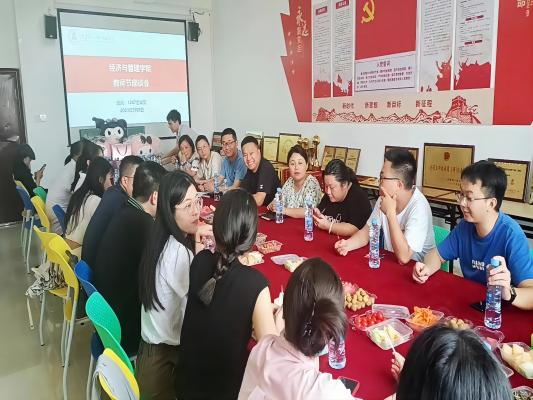 教书传道远,尊师种福长。在第39个教师节来临之际,beat365唯一官网于2023年9 月8日,在经管会议室举办教师节茶话会,院长胡梨花、党总支书记龙犇和副院长袁江波以及全体教职工共同参加!几盘水果,精美点心,品茗清茶,在这样一个恬静美好的午后,一场温馨的教师节茶话如约进行,老师们愉快地交流教学事宜。