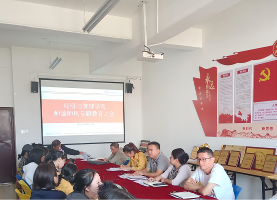 为进一步加强师德师风建设,提高教师思想政治素养和职业道德水平,引导广大教职工自觉遵守法律法规和教师职业道德规范,2023年10月17日beat365在1207会议室召开师德师风专题教育大会。会议由党总支书记龙犇主持,院长(主持工作)胡梨花、副院长袁江波、副书记朱红梅,全体教职工参会。