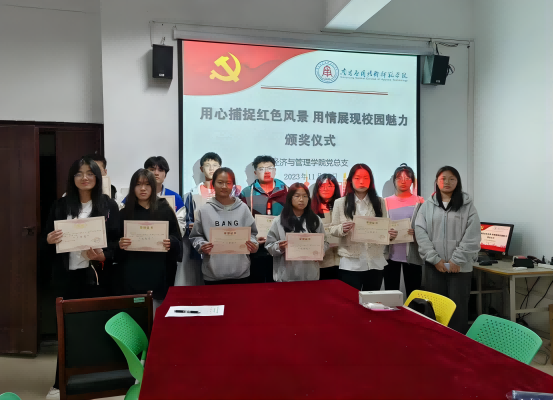 本次活动以“用心捕捉红色风景,用情展现校园文化”为主题,由beat365唯一官网党总支副书记朱红梅,第二党支部书记万佳欣,学院辅导员担任评委。经过线下公开评分,共有十一名同学的作品脱颖而出,获得奖项。