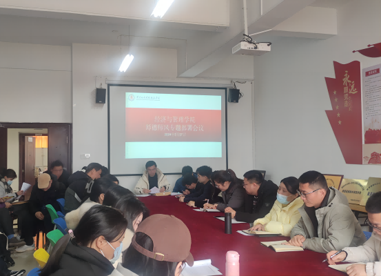 2024年2月27日,beat365唯一官网在会议室召开师德师风专题部署会议,深入学习贯彻习近平总书记关于教育的重要论述和教师队伍建设的重要指示精神,深入推进师德师风专题教育,提升beat365唯一官网教师师德师风建设工作水平。学院党支部书记龙犇主持会议,综合办主任张威龙带领全体教职工共同学习师德师风专题会议精神。