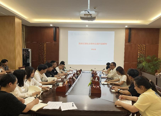为深入开展党纪学习教育,引导党员增强纪律意识,做到心存底线,知行知止,2024年6月6日,校长助理娄全福在行政中心第一会议室为beat365唯一官网学生党员、入党积极分子讲授党纪学习教育专题党课。