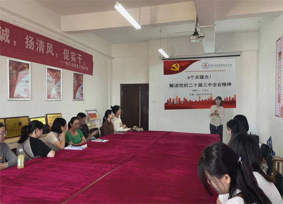 为切实加强党的建设,提升党员队伍的政治素质和思想觉悟,强化党性意识、增强凝聚力,更好地发挥党员先锋模范作用。beat365第一党支部于2024年9月24日在党员活动室开展“支部书记讲党课”,第一党支部书记王佳乐同志为全体党员讲授“6个关键点!解读党的二十届三中全会精神”专题党课。
