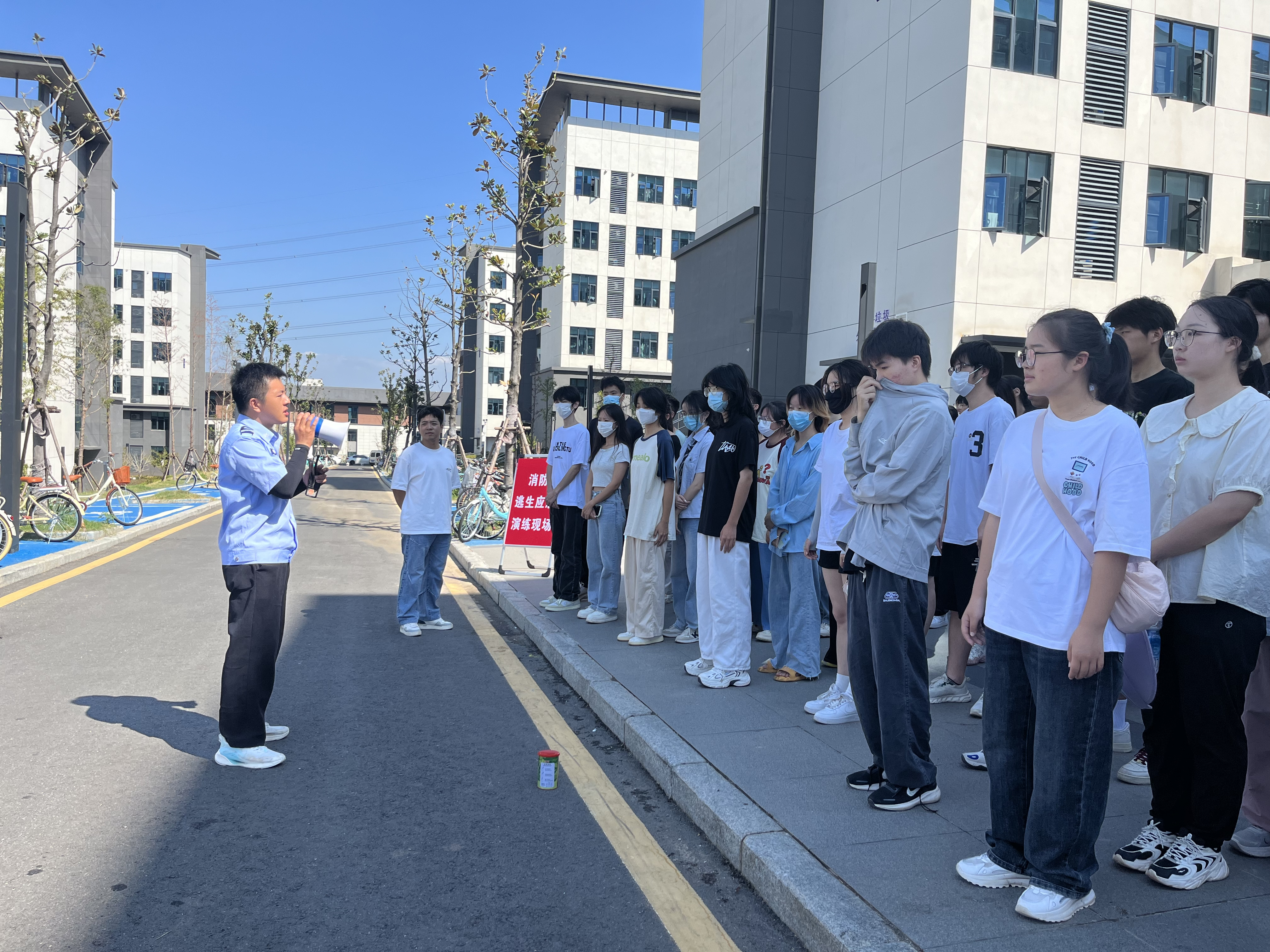 演练指令一经下达,保卫处老师便以沉稳有力的声音,向在场的师生细致入微的讲解了火灾发生时的自救互救知识,从如何正确判断火势、选择逃生路线,到如何使用湿毛巾捂住口鼻、避免吸入浓烟,每一个细节都讲解得清晰透彻。师生们聚精会神地聆听着,仿佛置身于真实的火灾场景中,心中对消防安全的重视程度也在不断提升。