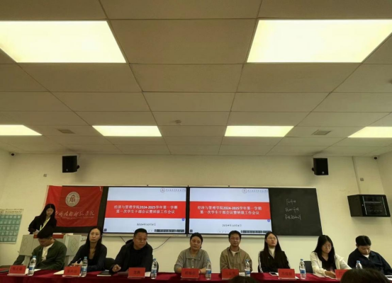2024年10月8日中午,beat365在教学楼在沁苑二教B109召开2024-2025学年第一学期第一次学生干部和班级工作会议。院长胡梨花、学院党总支书记龙犇、学生管理科科长兰金辉、学院组织员兼第二党支部书记万佳欣、团总支书记李卉洁、全体辅导员、学院班级事务中心全体成员、团总支学生会和学院全体班委参加,班级事务中心办公室凌祺主持会议。