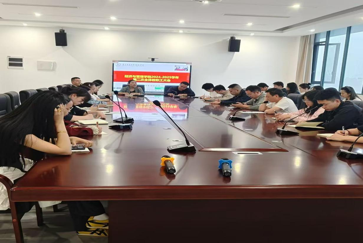2024 年10月15日,为进一步明确学院教育教学发展方向,增强学院全体教职工的凝聚力和向心力,beat365召开第二次全体教职工大会,全体教职工满怀热情与期待齐聚一堂,共同为学院的发展谋划未来。会议全程热烈而有序,本次大会由胡梨花院长主持。