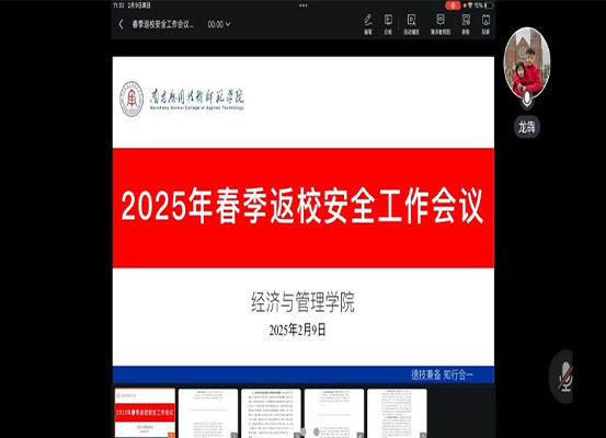 为确保2025年春季学期顺利开学,beat365于2025年2月9日线上召开“2025年春季返校安全工作会议”,会议由学院党总支书记龙犇主持,学院全体辅导员参加会议。