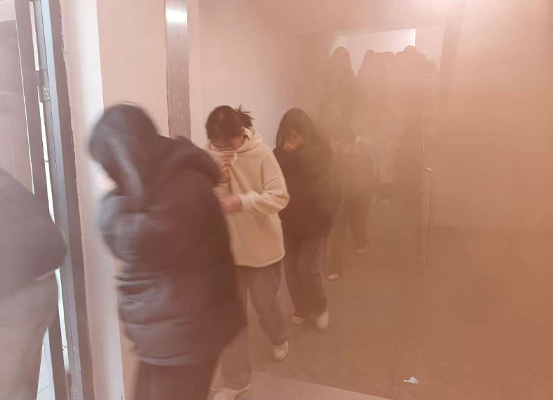 演练开始前,学院综治联络员、演练总指挥冯晓龙老师强调了消防安全的重要性,指出校园安全关乎每一位师生的生命财产安全,希望全体师生通过此次演练切实掌握应急逃生技能。随后,演练正式开始。随着警报声的骤然响起,演练现场“浓烟四起”,疏散小组成员迅速组织学生用湿毛巾捂住口鼻、弯腰低姿,按照预定疏散路线快速有序撤离。同学们在疏散小组的引导下,冷静沉着,行动敏捷,快速到达指定集合位置,各班随即清点人数并向演练指挥报告,整个疏散过程有条不紊、忙而不乱。