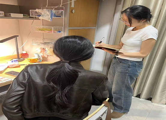 在走访过程中,班主任们化身“学术导师”,针对学生反映的学术困惑提供个性化指导。国贸专业班主任钟主任在3舍女生宿舍,针对学生提出的“文献阅读效率低”“创新大赛设计缺乏创新点”等问题,现场演示文献管理工具使用技巧,并分享“问题导向型设计”方法论。