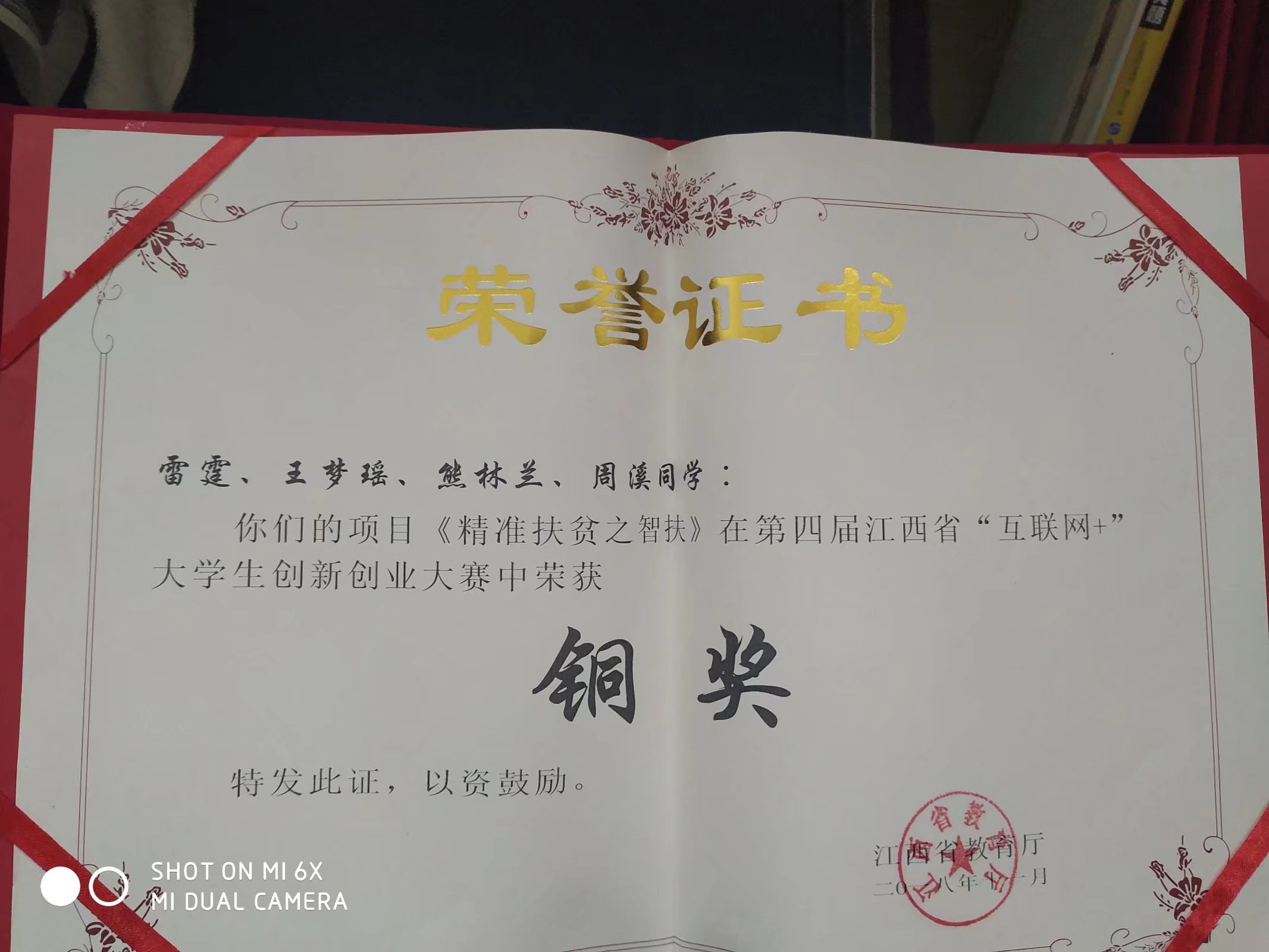 为了提升学生的综合能力,聂加龙老师在承担繁重教学任务的情况下,牺牲休息与健康等指导学生参加中国“互联网+”大学生创新创业大赛。一份付出一份收获,他指导学生申报的《精准扶贫之“智扶”》在第四届江西省“互联网+”大学生创新创业大赛中荣获铜奖。