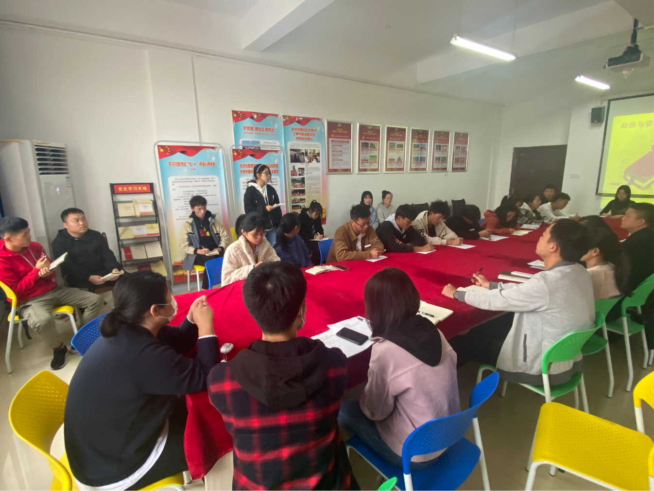 为了加强教与学之间的联系,更好地了解任课老师的授课情况和学生的学习、生活情况。2021年10月20日下午1点,经管学院在会议室召开2021级新生座谈会,学院领导、四位教研室主任、2021级新生代表及各班辅导员参加了会议。