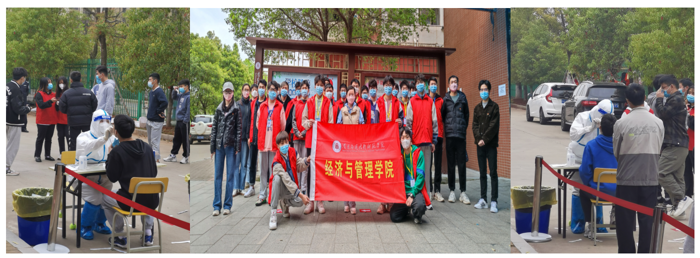 在核酸检测现场,学院领导指挥得力,各小组分工明确,学生会干部和党员、预备党员组成多支志愿者队伍,协助检测人员,加强采样现场的组织引导,避免人群聚集,严格落实采样点交叉感染,执行各项防控要求,确保全员核酸检测时没有漏采人员,没有因现场人群聚集造成疫情传播。