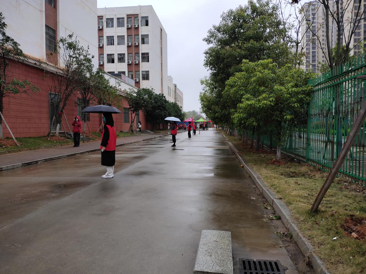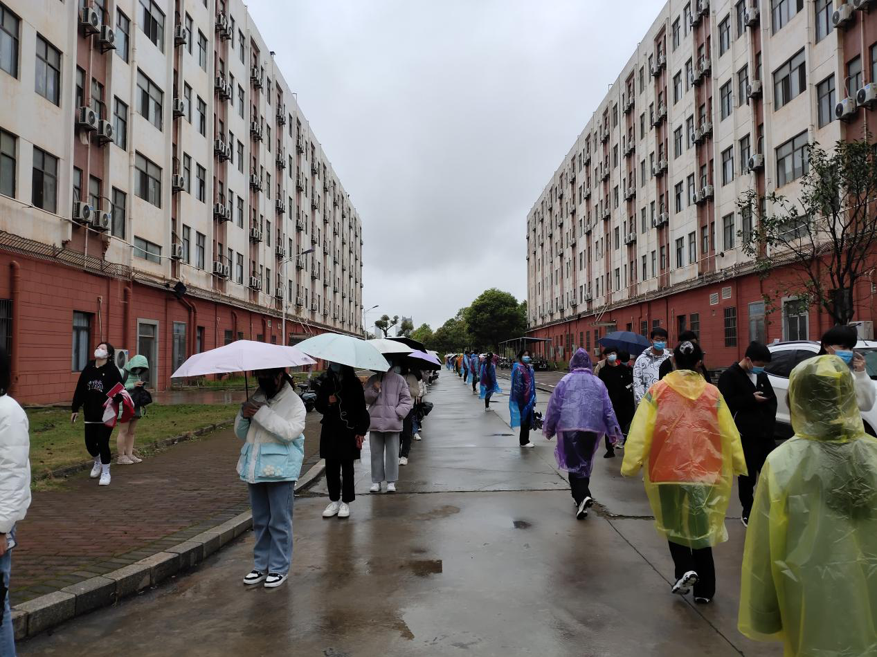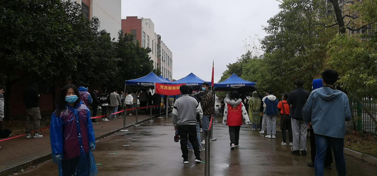 当天上午7:20,由党员组成的红色马甲志愿者服务团队,有的在核酸检测现场负责维持现场秩序,时刻提醒待测学生保持一米线间距,并引导其入场退场。有的负责组织扫码,验证学生身份,保证核酸检测速度和效率,确保所有人一个不漏参与检测。虽然天气下雨,气温骤减,但是他们始终坚守岗位,共克难关。
